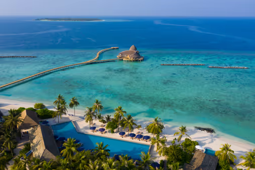 Entdecken Sie Wasser- und Strandvillen, umgeben von üppigem Grün. Genießen Sie Entspannung im Baumhaus-Spa und kulinarische Vielfalt in fünf einzigartigen Restaurants.