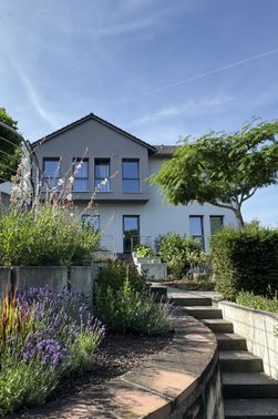 Auf dem 3.300 qm großen Anwesen befindet sich das Haupthaus im Landhausstil, das neu angebaute Gästehaus in modernem Design und ein großer ruhiger Garten. Der Garten bietet genug Raum für entspanntes Zusammensein, aber auch genügend Rückzugsmöglichkeiten für private Momente. Ein Barfußweg reizt auf angenehme Art die Sinne und ein Bouleplatz lädt zu einer kleinen Partie ein. Die Terrasse am Haus bietet einen traumhaften Blick über die Weinberge.