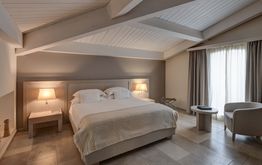 Die 50 Zimmer, darunter 15 Suiten, sind individuell gestaltet und spiegeln das historische Erbe sowie die zeitlose Eleganz des Relais Histò wider. Mit minimalistischer Einrichtung, sanften Steinnuancen und mediterranen Farbtönen entsteht eine ruhige, harmonische Atmosphäre, die im Einklang mit der umgebenden Landschaft steht.