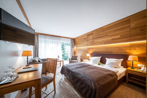Das Waldhotel verfügt über 82 gemütliche und individuell gestaltete Zimmer, Suiten und Appartements mit hochwertiger Ausstattung aus Eichenholz und herrlichen Blicken in die grüne Parklandschaft. Einzelzimmer sind Doppelzimmer zur Alleinbenutzung.