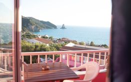 Die Zimmer sind schlicht und funktional. Alle Kategorien verfügen über Meerblick und einen privaten Balkon. Von hier aus genießen Sie den Blick auf das Ionische Meer und lassen den Tag entspannt ausklingen. Jedes Zimmer ist klimatisiert und mit einem eigenen Bad mit Dusche und WC ausgestattet. WLAN steht zur Verfügung. Ein kleiner Kühlschrank sowie ein Wasserkocher für Tee oder Kaffee sorgen für zusätzlichen Komfort.